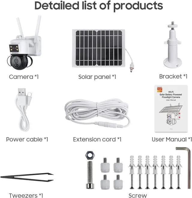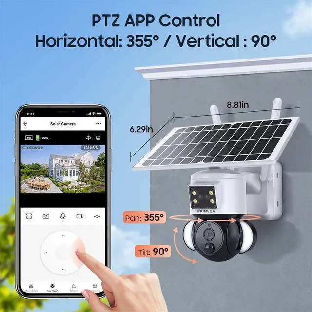 Pan & Tilt &SD Card/Cloud - solar camera security outdoor equipped with 355°pan and 120°tilt (Including 16 ft mounting cord) ,you could control the direction on the TUYA SMART LIFE APP.Supports 8-128G SD card (not included),you can also select cloud storage method to record.(Not support 5G wifi)