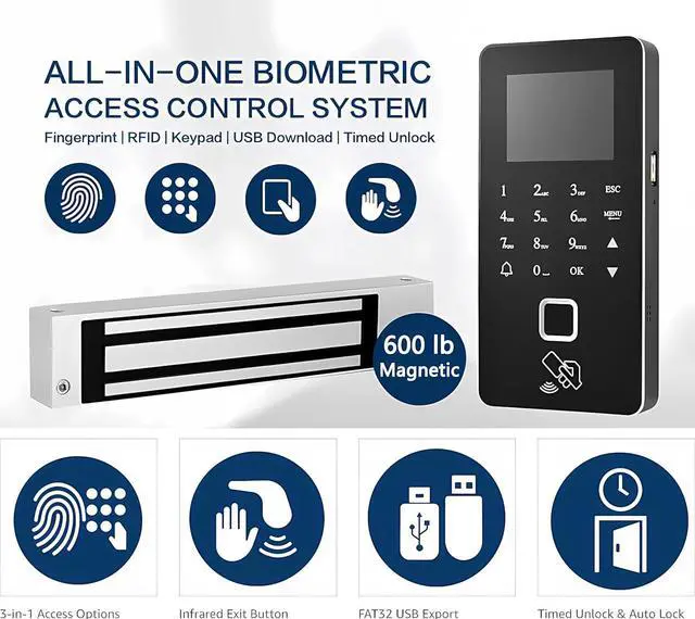 All-in-One Biometric Security Solution Supports fingerprint, password, and RFID access ideal for managing entry securely in offices, studios, shops, and homes.