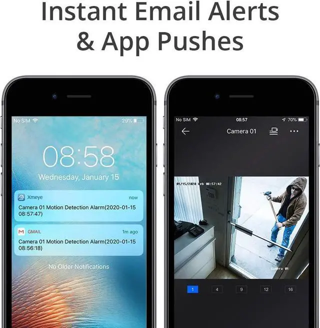 Enables easy remote access via DNS (ARSP), supporting web, VMS, MYEYE platform, and mobile monitoring (iPhone/Android) receive alarm pushes directly to your phone anytime, anywhere.