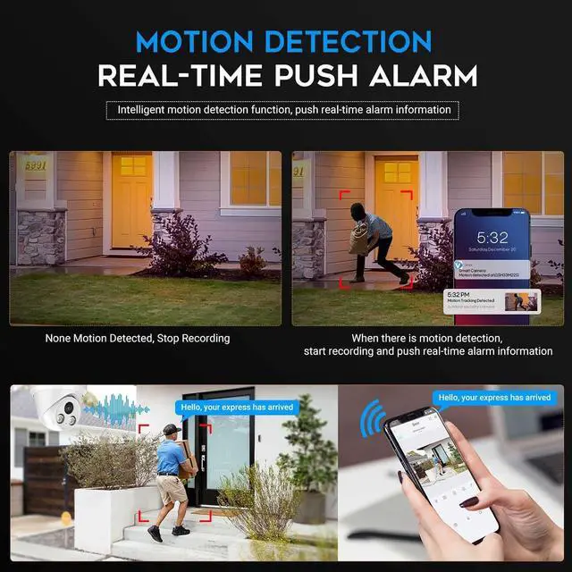 Smart Human/Vehicle DetectionThis 8MP full color camera equipped with professional human/Vehicle detection functions, the detection area or sensitivity can be adjusted to effectively reduce false alarms.When person enters the video area, the Turret ip camera will automatically detect and send the real-time video/snapshot to your mobile phone;This 8mp poe camera easy to setup(Plug and Play) and it fits for indoor and outdoor, residential areas, retail store, business.
