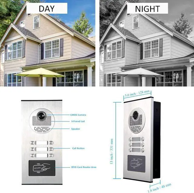 CMOS camera IR night vision high resolution door monitor camera, The Outdoor doorbell is constructed using a full aluminum front panel for protection from vandalism, while waterproofing protects from the elements.