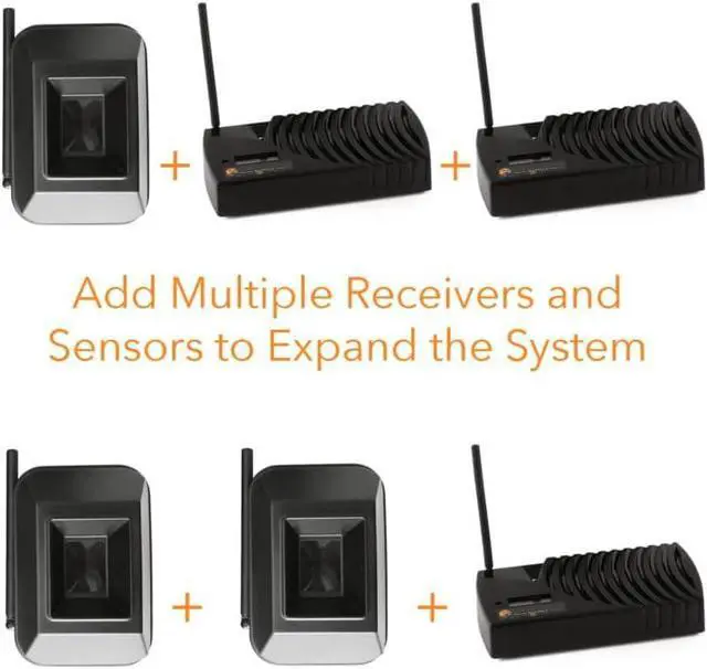 Long range driveway alert: 1000 ft range with long lasting battery and expandable system. Add multiple receivers and/or sensors to cover larger areas
