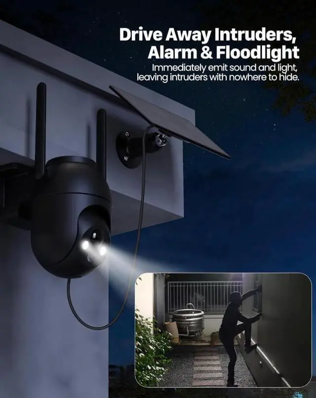Alarm Light & SoundYou can set the wireless camera outdoor to emit a harsh alarm sound to drive away intruders or unwanted small animals. The outdoor camera wireless can automatically emit a sound when triggering a motion alarm. You can also say what you want by manually pressing the microphone icon in the app. While letting the camera automatically sound an alarm, please be aware if it will affect your neighbors. Your home security system.