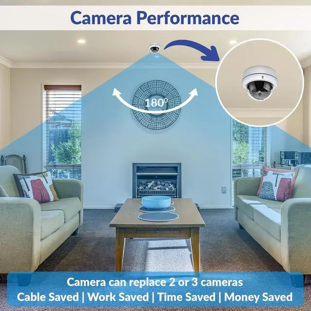 This DCSEC 5MP 180 Degree IP Surveillance Camera provide 180 Degree Wide Angle View,Everything is Under Control. 1 Camera can easily Replace 3 Cameras,Cable saved,Work saved,Time saved,Money saved