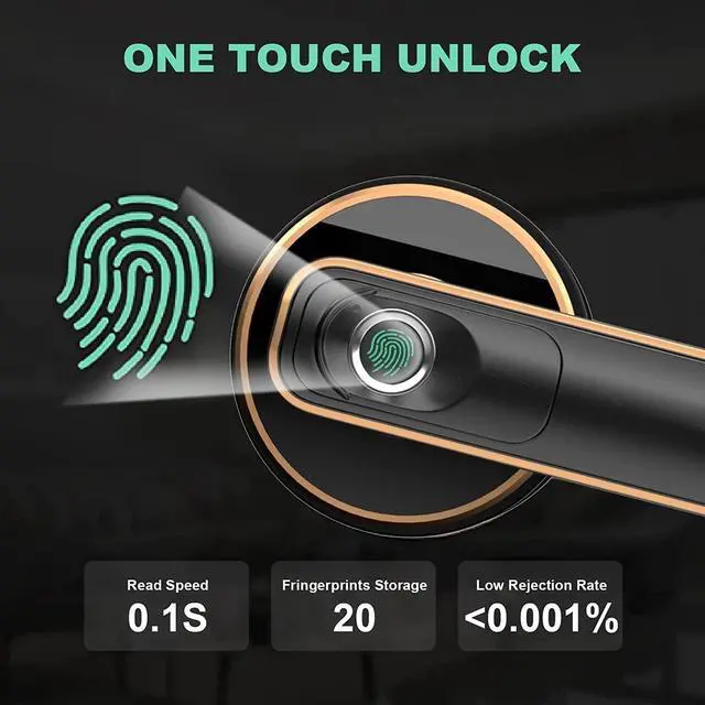 Much faster than any key to unlock: Store up to 20 fingerprints. A lightning speed 0.1 seconds is all that is required to open. No app needed to program or operate