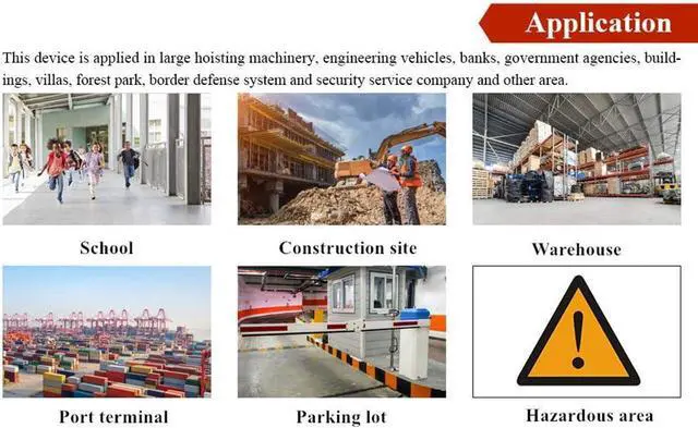 ApplicationIndustrial LED acousto-optic alarm range: for crane, gantry crane, bridge crane, crane, tunnel construction, metallurgy, ports, construction site, school security, security risks seriously etc..