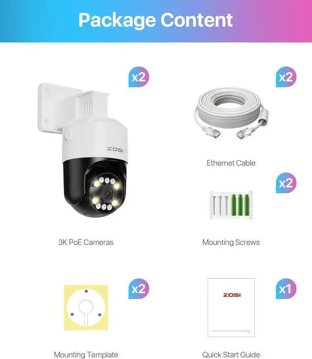 (1). [ Read before Purchase ] __ 1.This C296 5MP 3K PoE camera is an add-on camera and requires a ZOSI PoE NVR to function. It cannot be used independently.2.This package includes 2 Ethernet cables for connection.