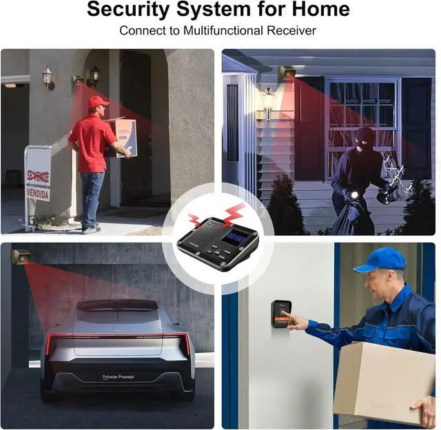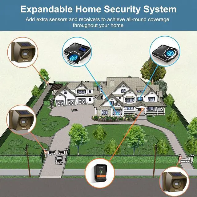 [ Reliable & Expandable for Home Security ] 1800 ft long range tested in real-world settings with trees, buildings, walls, and vehicles for an accurate measure of wireless range. Weatherproof Motion sensors and doorbellworks well in rain or snow! Expandable to 8 units and extra receivers can be added to this wireless doorbell and driveway alarm system to improve your home security coefficient.