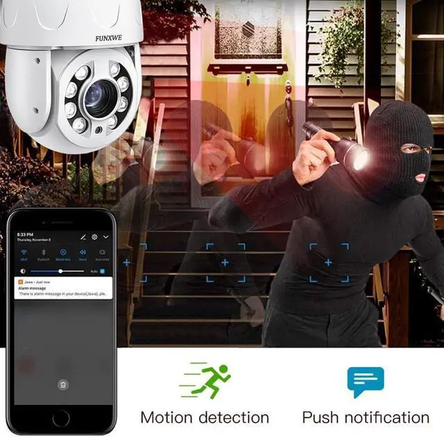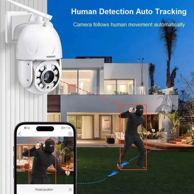 Motion Detection, Auto Tracking: Push real-time alert notifications to App, send pictures to email, save pictures and record video to TF card, FTP server, trigger siren alert. Support motion detection and humanoid detection auto tracking, can follow peoples movement automatically.