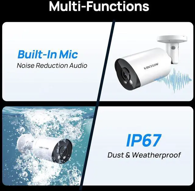 Indoor/Outdoor IP67 Camera with Audio- This 8mp poe ip camera outdoor adopts advanced image processing and optical technology to still provide clear images in extremely low-light environments, achieving unparalleled low-light capabilities. Heavy-duty metal weatherproof IP67 enclosure, which can still work normally after being immersed in 1m deep water for 30 minutes. 4K bullet camera built-in mic audio recording (one-way audio), real-time capture of the sound around the camera,don't miss any details.