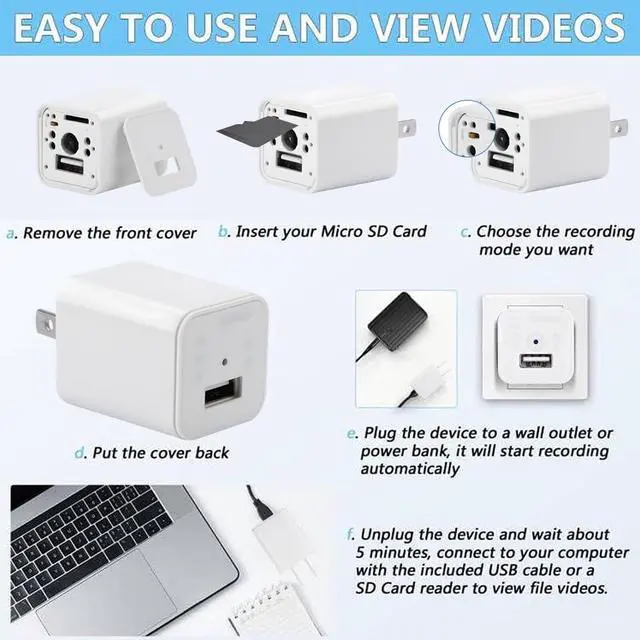 • Discreet Design & Dual Function This hidden camera charger looks and functions like a regular USB charger, making it undetectable in any room. Charge your devices while monitoring your home, office, or nursery in full 1080P HD