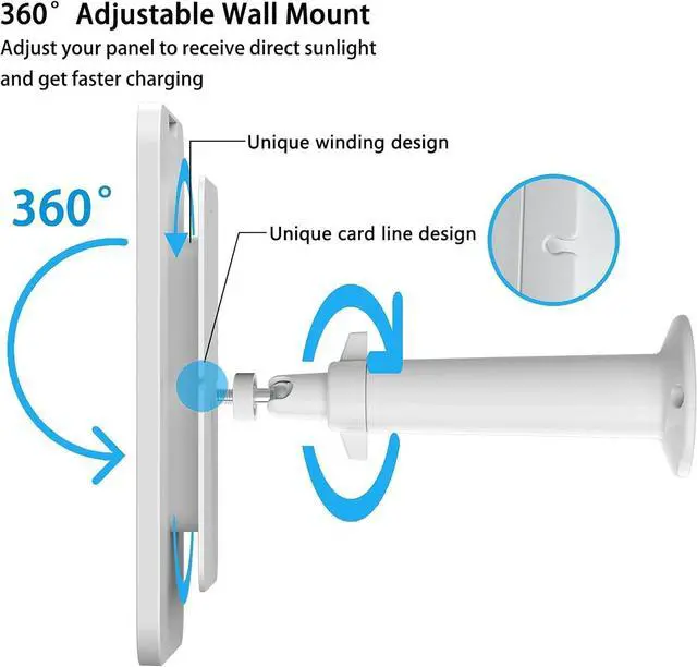3. FLEXIBLE ADJUSTMENT:Secure mounting bracket can adjust in 360 degree to capture the sunlight in different seasons,allow the solar panel to absorb more energy form different orientations.The solar panel charger with 13ft(4m) cable, This is long enough to allow you to place your solar panels in a more light-sensitive position to absorb more of the sun's rays.