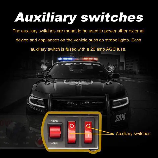 The siren built-in 8 kinds of alarm (WAIL-1,WAIL-2YELP,TOOL,HI-LO), etc