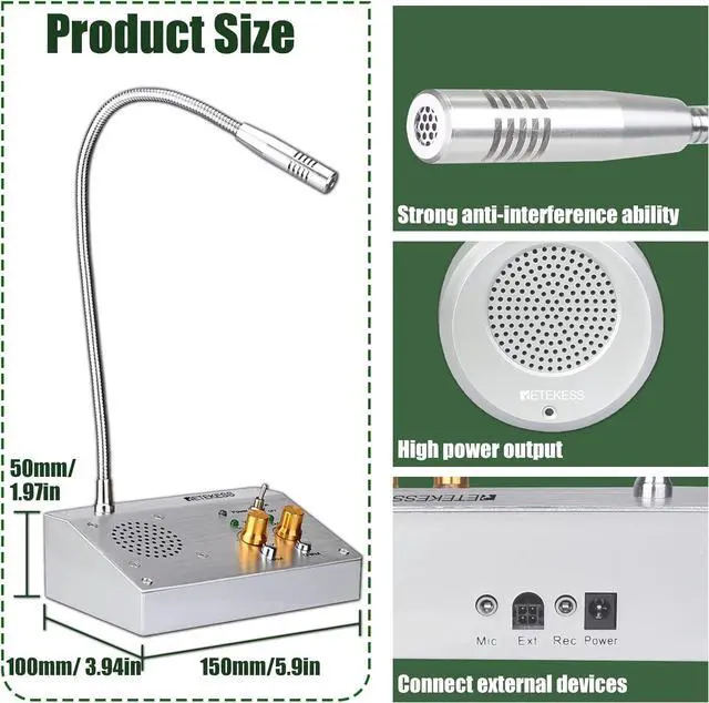 Voice resources input; connect the signal input port to computers, mobile phones and other devices; broadcast information for customers