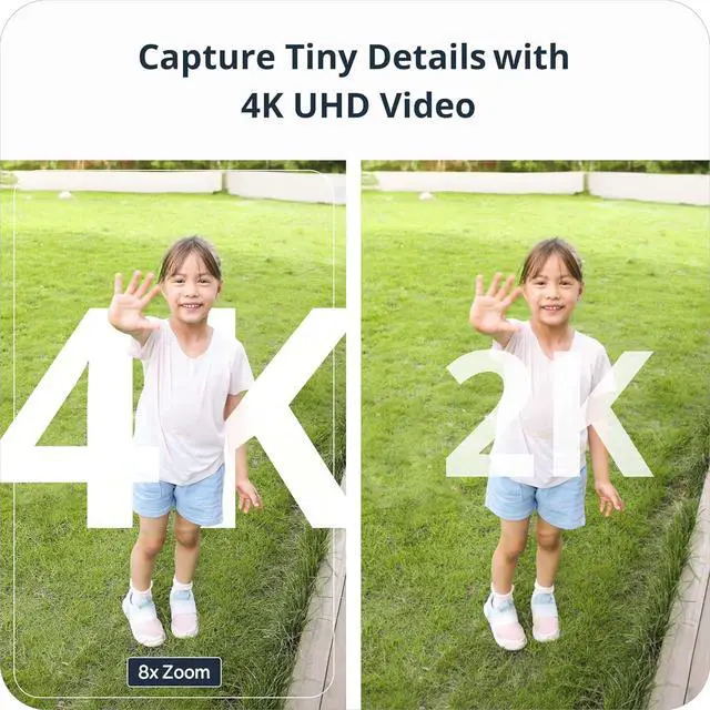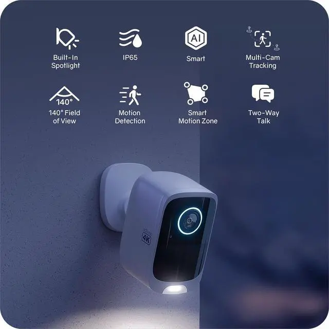 4K & Color Night Vision Safemo Wireless Security Camera Outdoor System offers unparalleled clarity with 4K resolution, ensuring every detail is captured. The camera features a 3840x2160 resolution, 8x zoom, 100 lumen brightness, color night vision range of up to 40ft, an f/1.6 lens, and a 140° field of view. Safemo captures detailed images in low light with color night vision and utilizes the motion-activated spotlight for comprehensive monitoring and deterring unwanted intruders.