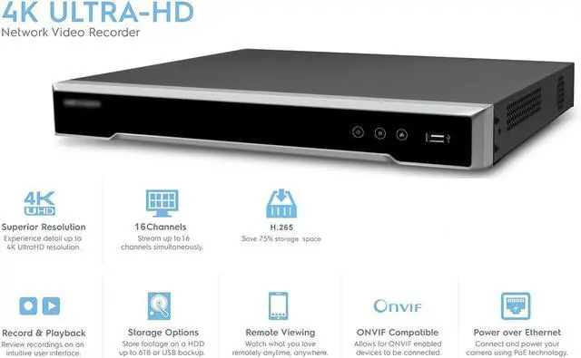 16-Channel PoE 4K Network Video Recorder NVR, Embedded Plug & Play DS-7616NI-K2/16P
