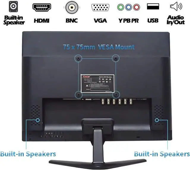 [More Functions] This security monitor screen comes with 2 built-in speakers. With built-in USB port media player. It can play movies or videos simply by USB disk. Great for Home/Office/Store Surveillance Camera STB, DVR, NVR, PC, DVD Player.