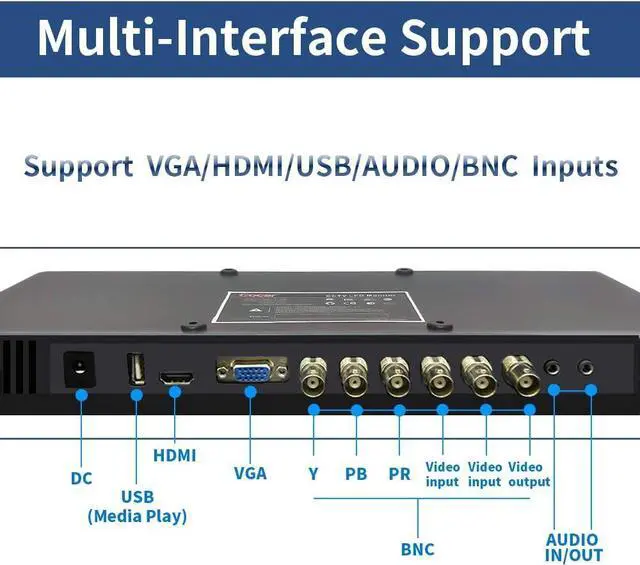 [Max Compatibility] With multiple interfaces: YPbPr(component BNC), HDMI, composite BNC(2x inputs & 1x output), VGA and 3.5mm Audio Input/Output. Perfect for connecting with CCTV monitor, set-top-box, NVR or DVR system. Also works on PC, rear view camera, DVD Box and MP5 etc.