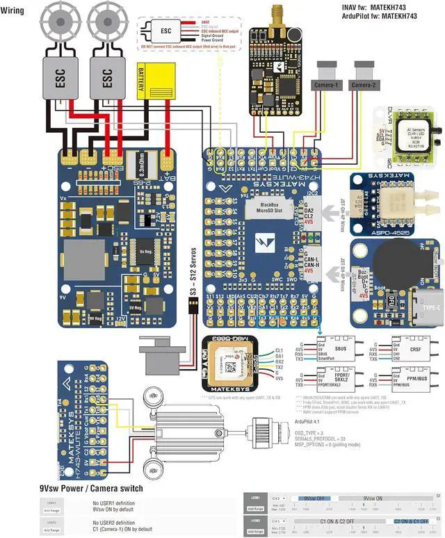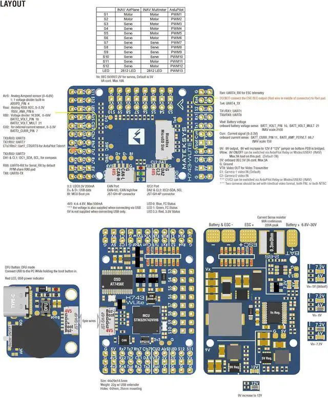 Matek Flight Controller H743-WLITE : Upgraded Flight Controller,it is designed specially for fixed wing,with 3x BEC