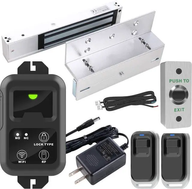 An exit button is included in this magnetic lock system kit, and you could exit from indoors easily by pushing it once.