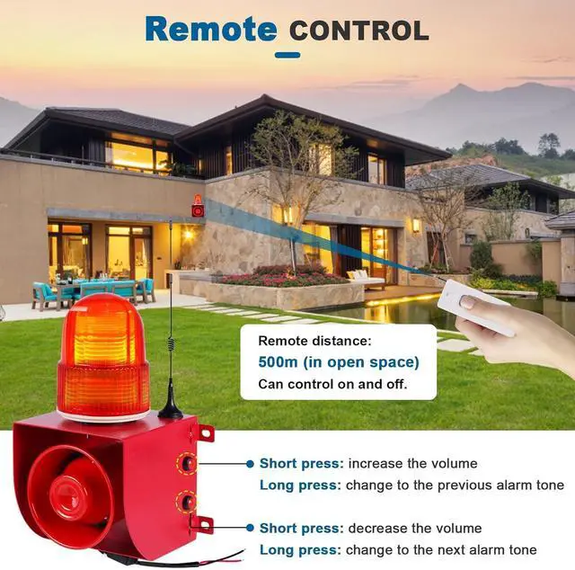 0.311mile Remote ControlYou can easily control the industrial siren alarm start and stop within 0.311mile, easy and quick to operate. (Remote control distance will be shortened if there are obstacles)