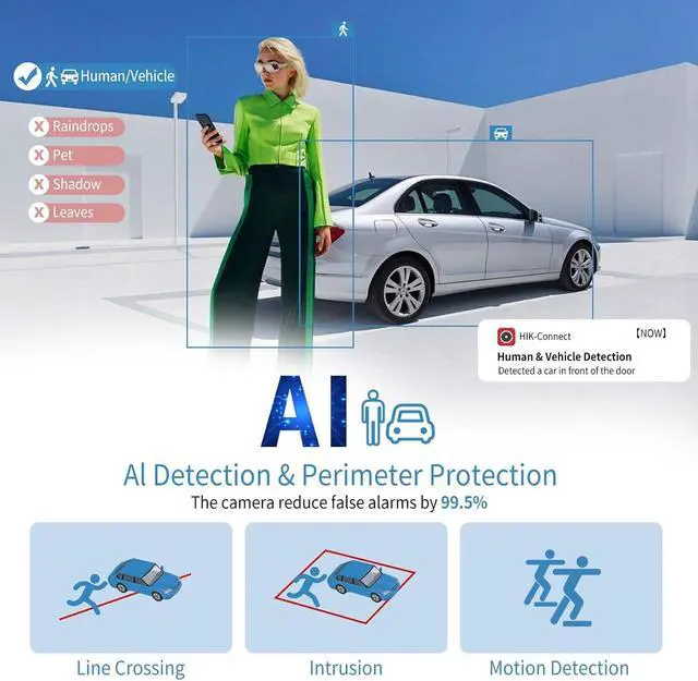 Focus on deep learning algorithms to accurately distinguish between human and vehicle movements while filtering out irrelevant motions from animals or objects like animals or inanimate objects moving in the wind. This intelligent classification significantly reduces false alerts for more efficient monitoring