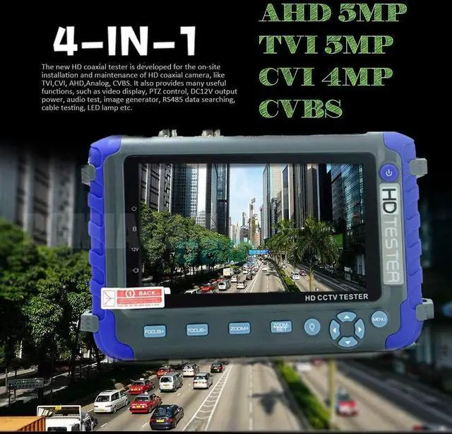 CCTV Tester Support CVBS + AHD + TVI + CVI Camera Testing The HD coaxial CCTV tester is developed for the on-site installation and maintenance of HD coaxial camera. Our CCTV tester support CVBS + 8MP AHD + 8MP TVI + 8MP CVI Camera Test. (it cannot suppot HDMI )