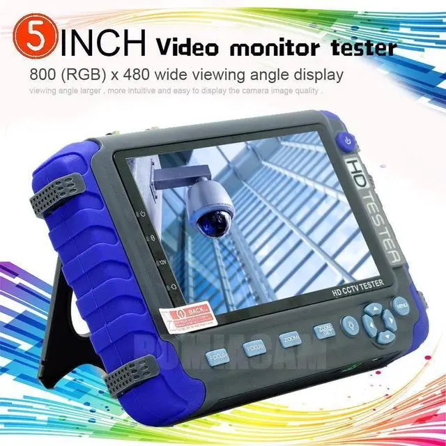 5 inchs display of CCTV tester This CCTV tester have High-resolution 5.0 inches 800 (RGB) x480 wide viewing angle display, When you use this CCTV tester , you will get the Viewing angle larger, more intuitive and easy to display the camera image quality. Tester support PAL/NTSC standard video signal.