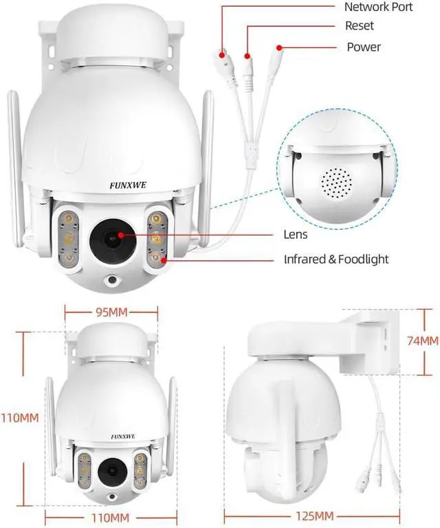 Motion Detection, Auto Tracking: Push real-time alert notifications to App, send pictures to email, save pictures and record video to TF card, FTP server, trigger siren alert. Support motion detection and humanoid detection auto tracking, can follow peoples movement automatically.