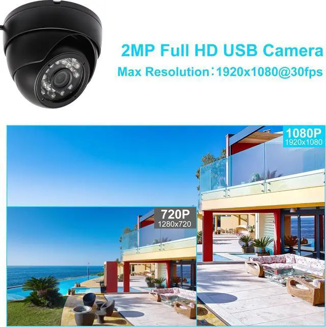 1080P FHD Resolution Webcam-2 Megapixel dome usb camera is a high resolution 1920 x 1080 camera, capture perfect color pictures by day and clear black and white images at night. USB webcam high frame rate 120fps: 1920x1080@ 30fps,1280x720@ 60fps,640x480@ 120fps, the webcam can install directly at house or bank etc.
