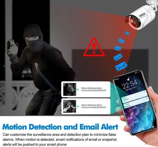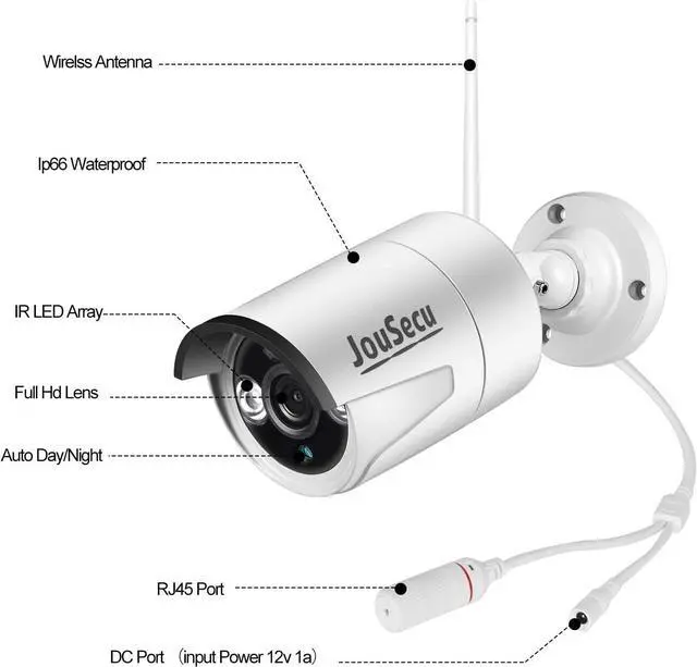 Plug and PlayThe WiFi IP camera has been paired with the NVR system at the production site. Because the IP camera is not battery-powered, it needs a wired power supply, and you can enjoy 24 hours/7 days of monitoring services when you plug it in. In an open place, the transmission distance between the NVR and the camera can reach 300 feet.