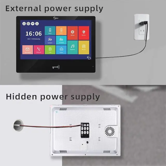 10 INCH TOUCH MONITOE AND 1080P DOORBELL:10 inch touch screen monitor, touch operation, hands-free, support Wifi to connect to the Internet. Outdoor doorbell with waterproof cover, built-in infrared sensor and 1080P camera,148o wide angle, night vision, waterproof, dustproof and vandal resistant. You can connect all 12V electronic locks.