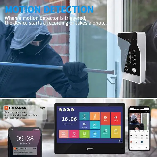• 5 in 1 UNLOCK: Our video doorbell has 5 unlocking methods. You can unlock by password, fingerprint, IC card, APP and monitor. It is very convenient and flexible. 5 passes are included in th