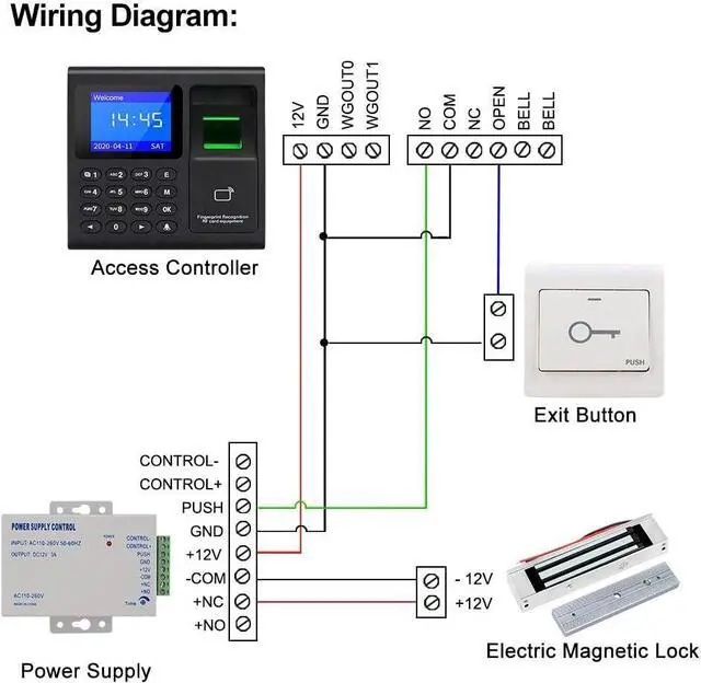 5, Exit Button: Made of fire retardant ABS plastic material. Working voltage is DC12V. With COM / NO wiring ports, suitable for various type of electric locks.