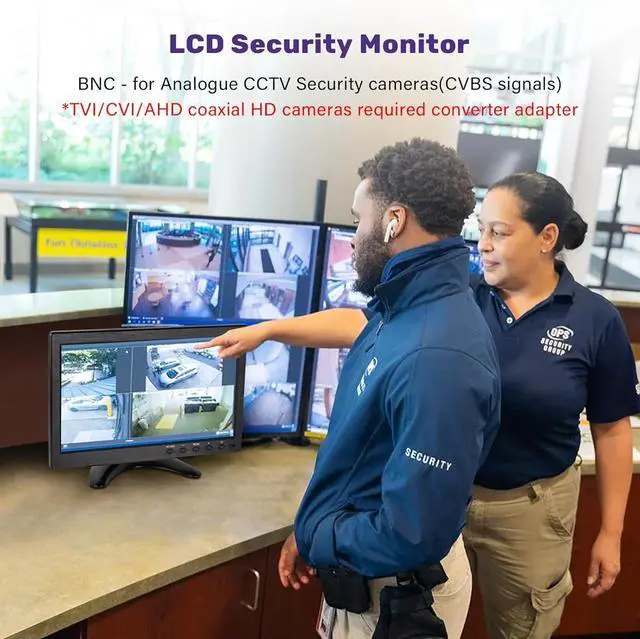 Various interfacesThis small bnc monitor offers multiple input ports, connects to almost any device. HDMI (gaming, monitor for Raspi, computers, laptops, DVR or other devices with HDMI connectors)VGA (PC, laptop)AV(DVD, VCD,TV-Box, security cameras with AV connectors)BNC(CCD, CCTV)USB(U drive, Other USB devices).