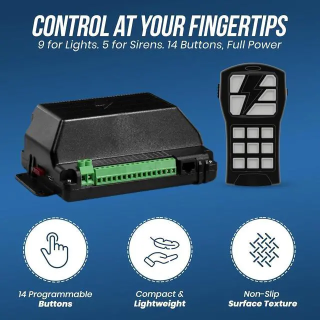 14 Programmable Control Buttons: Easily control up to 9 emergency LED lights and 5 different siren tones using tactile, backlit buttons of this PA speaker system. It allows quick activation of light patterns and sounds during critical situations, all from one handheld controller