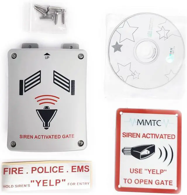 New and improved siren operated sensor Easy and effective emergency access, Makes all gates 911 accessible Compatible with all gate/door operators Comes with a 4x5 inch reflective sign 12-24VAC/DC; 2-wire 6.5 (h) x 4.125 (w) x 2.25 (d)
