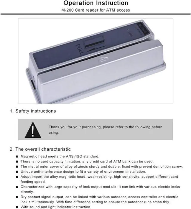 Magnetic head meets the ANSi/ISO standard, There is No card capacity limitation,any credit of ATM bank can be used.