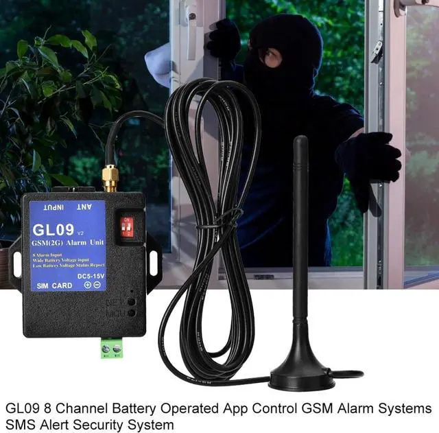 GSM Alarm System, GL09 8 Channel Battery Operated App Control SMS Alert Security Systems for Home and Warehouse