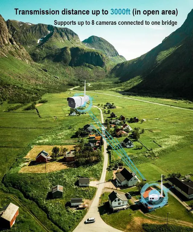 2024 Upgrade Design2024 new upgrade technology,this wifi halow ip camera is ANJIELO's exclusive product, Our bridge signal transmission distance can reach up to 3000 feet, which means that by providing a wireless bridge,our cameras can work within 3000 feet from the bridge without network cable.Widely used in parking lots,farms, large workshops factories,docks and other scenarios. Extend the IP camera monitoring range.