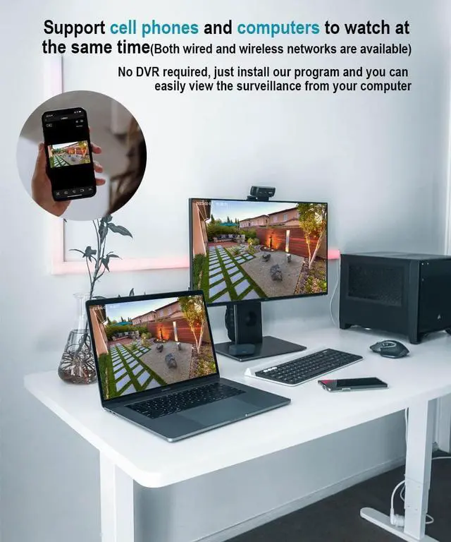 2MP HD Night Vision& Motion detection & IP65 WeatherproofEquipped with 2MP HD camera, Outdoor wireless cameras allow you to view clear pictures remotely, day or night.The camera features motion detection and instant alerts. When motion detection is triggered, the Tuya app will immediately send you a message.Not only support cell phones to view surveillance, but also on the computer to watch real-time monitoring.IP65 Weatherproof,which means you can safely use it outdoors