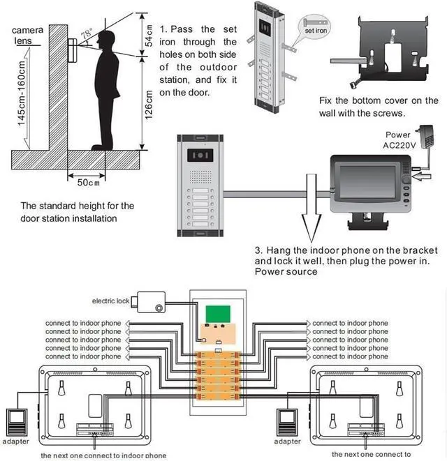 Simple 4-wire connection to Each Unit (you can use regular Cat.5 cable as extension or RVV4 cable extension Transmission distance maximum 100 meters)