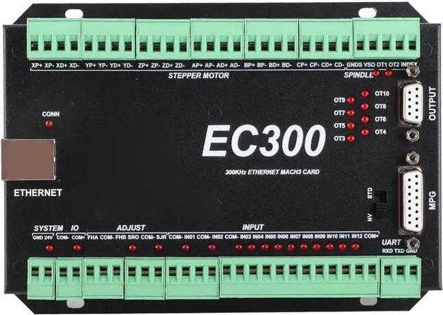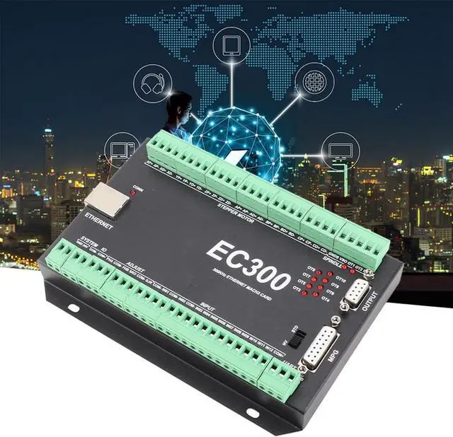 Product Description : This EC300 control system is a high performace external motion controller for Mach 3 software , with Ethernet interface supporting standard MPG and Digital Dream MPG , which is an ideal choice for you