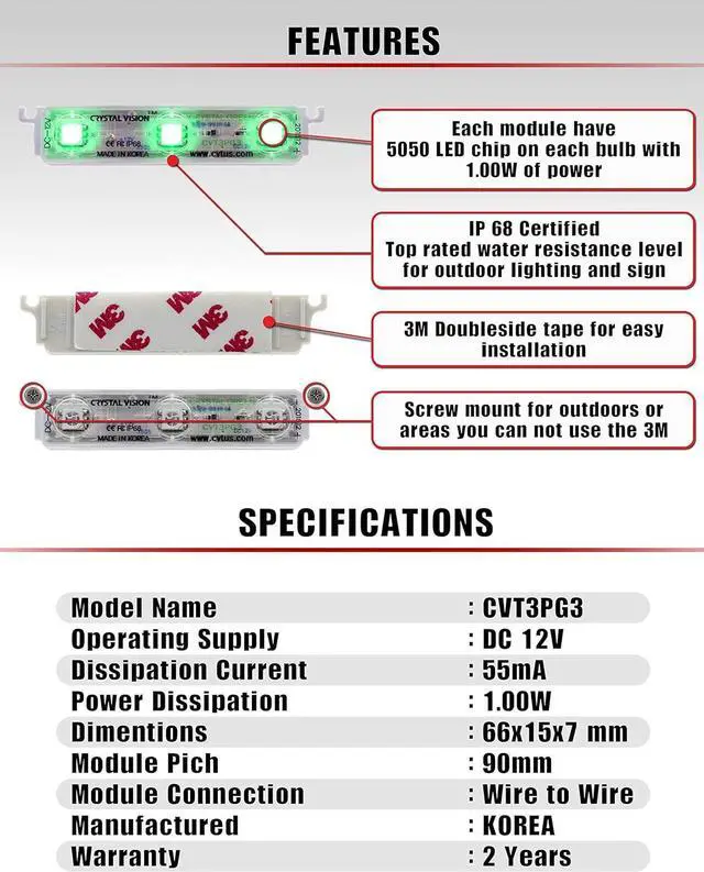 Crystal Vision Korean 5050 LED Super Crystal - 1.00 Watts per module