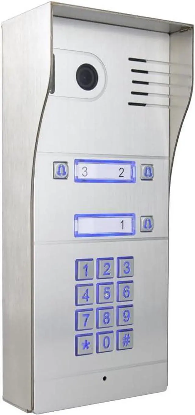 [COST-SAVING]- No wiring for this apartment building intercom system is necessary, only three wires: one power line, one RJ45 internet cable and one unlocking wire. Save lots of installation labor cost. Premium Brushed Aluminum faceplate for durability. All-stainless steel Back Box, Weatherproof IP65 rated construction. Always-on blue backlight enables easy user operation in low light conditions. Requires 12VDC 1A Power (adapter included) or can be powered through a wired Ethernet connection using the integrated PoE. 2 years manufacturers warranty.