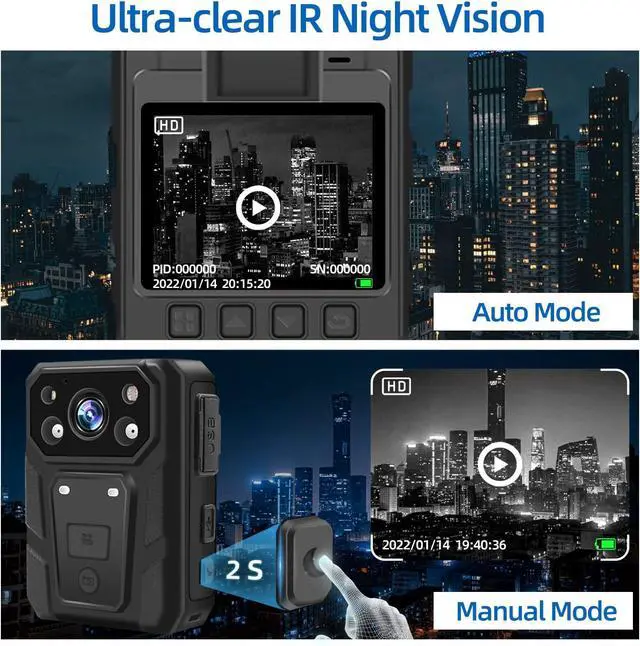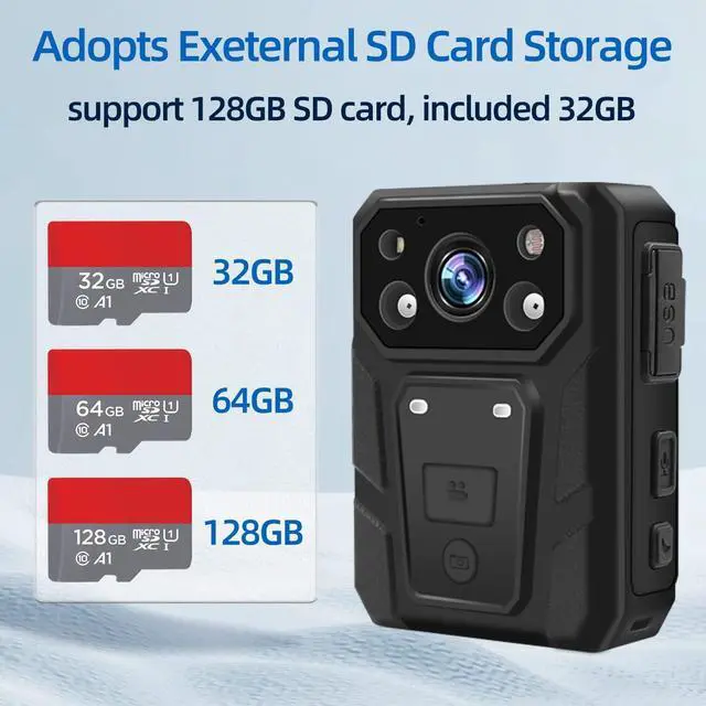 64G Memory and Loop Recording: With a 64G memory card, it can save a large number of videos, pictures and recordings. After turning on loop recording, the latest video will overwrite the earliest video when the body camera memory is insufficient, which can help you record more important scenes at any time
