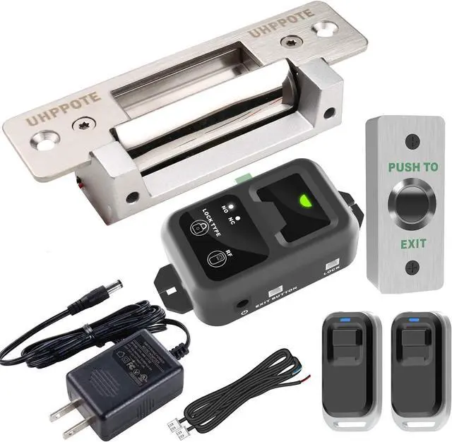 An exit button is included in this strike lock system kit, and you could exit from indoors easily by pushing it once.