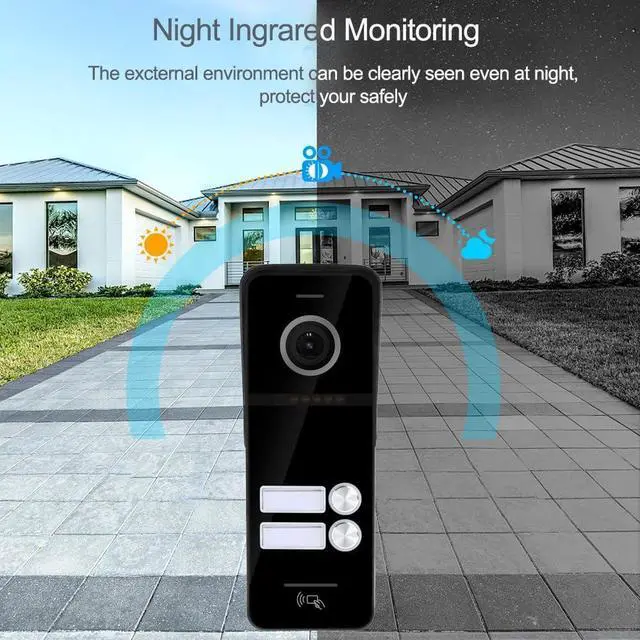 1080P HD IR night vision, IR night vision high resolution access control surveillance camera, easy to install, stable wired connection, suitable for home security.140o wide angle with rain cover, built-in speaker and microphone. Can be used in flats, villas, hotels, offices, public buildings. Support video intercom for up to 12 security monitoring devices.