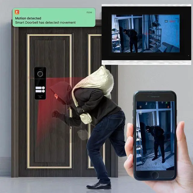 3-in-1 UNLOCKING AND AUTOMATIC VIDEO RECORDING: The device has multiple unlocking methods. You can unlock it by ID card, APP and screen monitor. Very convenient and flexible. When motion detection is triggered, the camera will automatically capture or record video and save it in the monitor's Micro SD card (including 32G SD card). You can view the footage via your smartphone at any time.