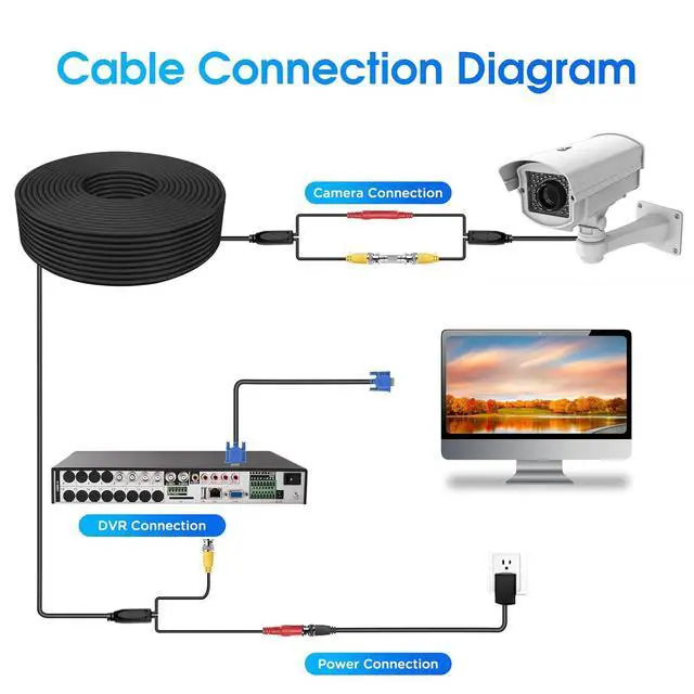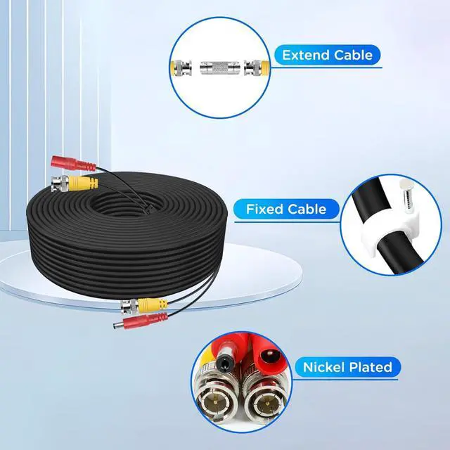 Wide ApplicabilityCable is compatible with most cameras,and provide DC power for the surveillance camera system.Package included BNC connector and Cable clips can extend cable length adn make wiring more convenient.Increased flexibility in the process of using.